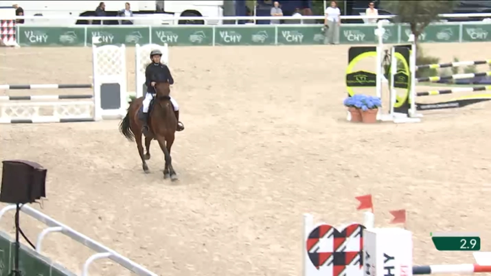 Ambre Bejeau and Banco des Champs during show: JUMPING INTERNATIONAL DE VICHY 2025 and in competition: